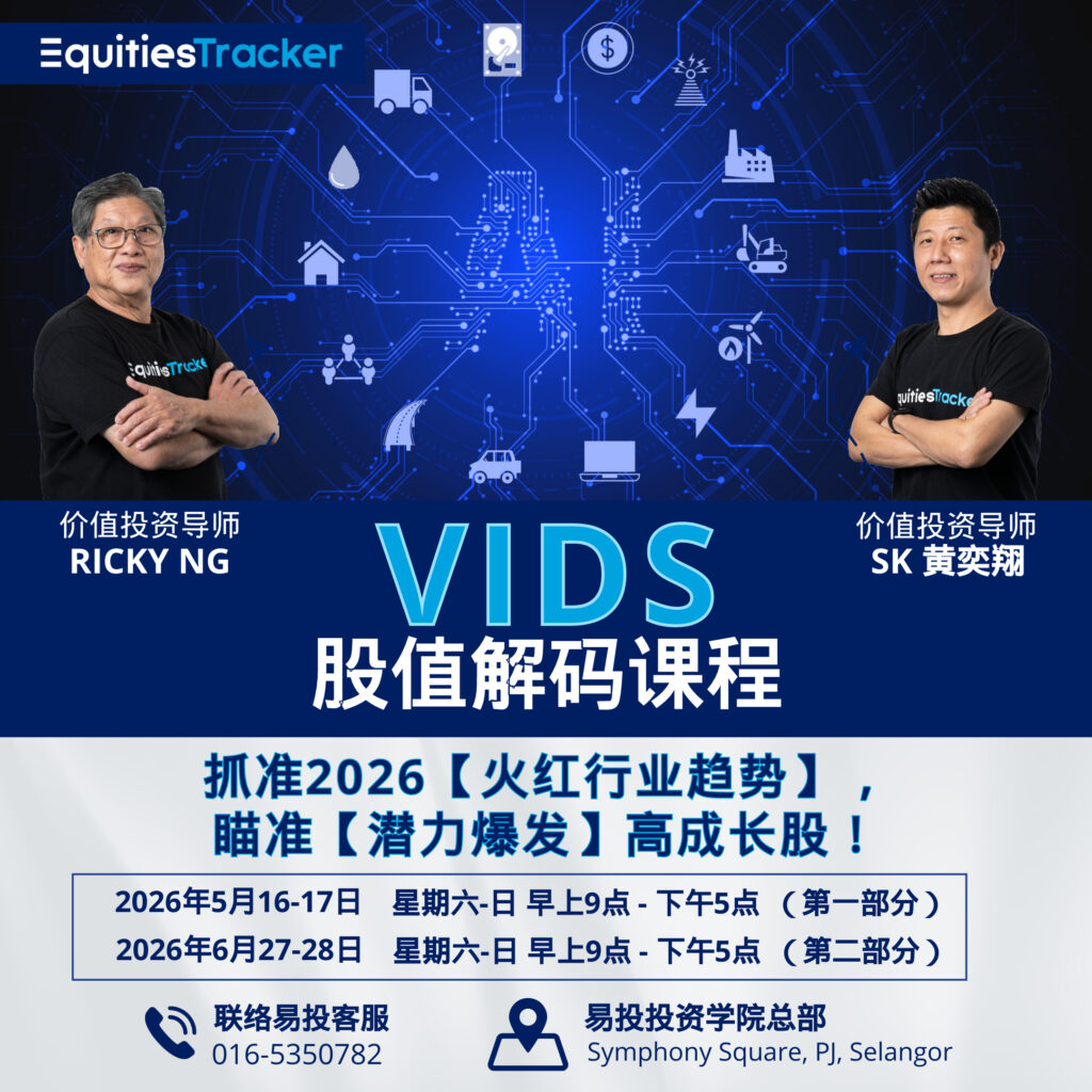 股值解码课程 (VIDS) 是易投(EquitiesTracker)为马来西亚专业价值投资者打造的必修课程 。这个为期 4 天的课程将引导您利用CEO的角度判断企业,并利用趋势判断出行业中潜在成长上市公司的特质。